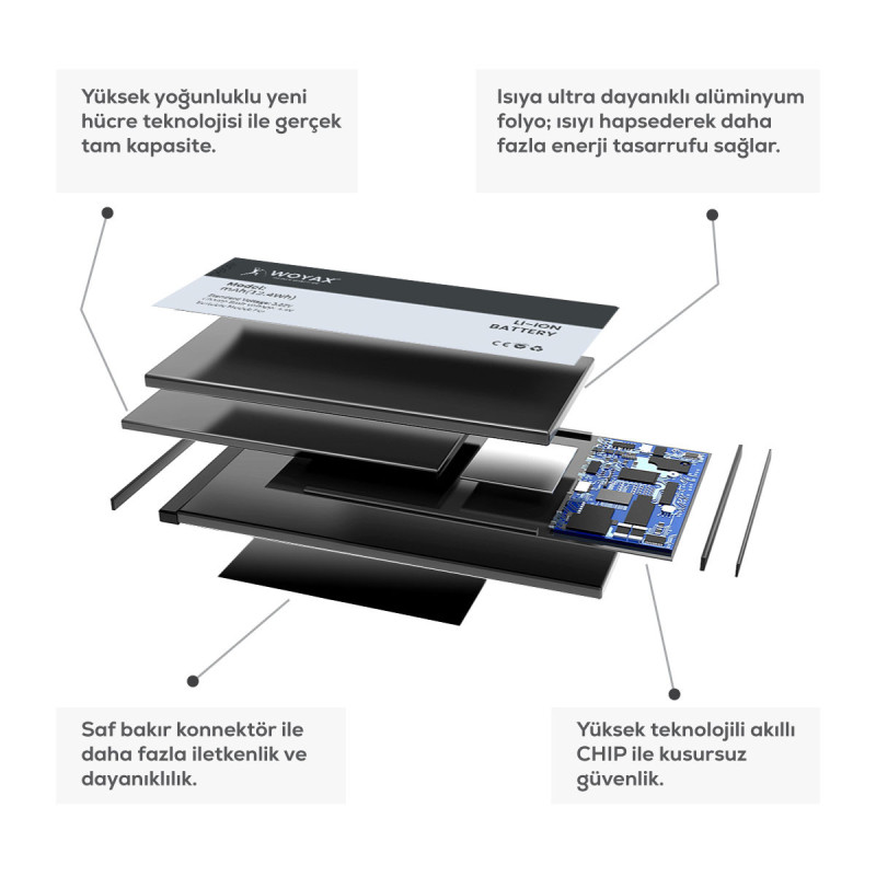 Woyax by Deji’nin eşsiz ve güçlü yapısı ile cep telefonları için gerçek ve tam mAh kapasite batarya.
