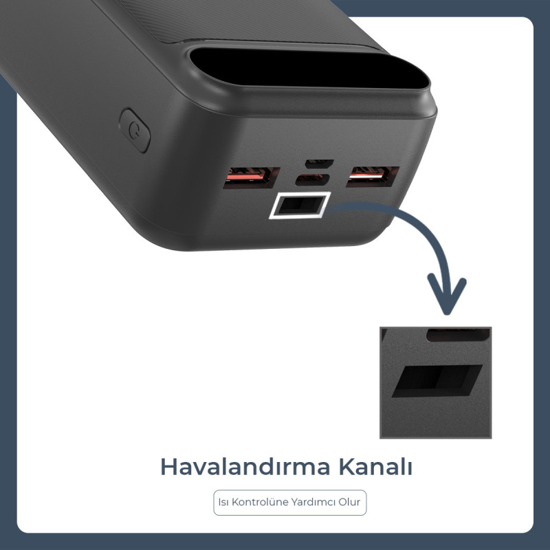 Yüksek Kapasite: 30.000 mAh kapasite. Hızlı şarj - 22,5W – Çift usb çıkışıyla aynı anda iki cihaz şarj edebilme. Güç bankası aynı anda 3 cihazı şarj etmeyi destekler. PD 22,5W Taşınabilir Şarj Cihazı yalnızca tüm akıllı telefonlar ve tabletleri değil, aynı zamanda AirPod'ları, Bluetooth kulaklıkları, akıllı saatleri ve diğer küçük cihazları da şarj edebilir.